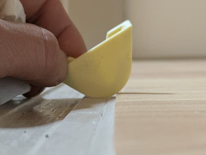 マスキングテープをはがすときにコーキングをクッションフロアにつけないように注意しましょう。