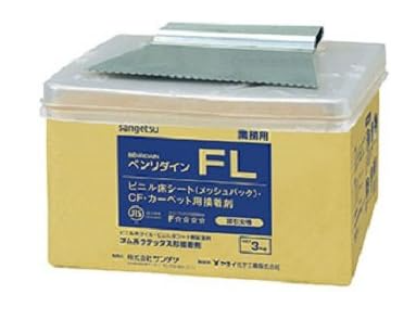 クッションフロアの張り付けには専用の接着剤を使います。おススメはサンゲツのベンリダインです。ベンリダインの良いところは低臭性です。塗っている最中も匂いが少なく、クッションフロアを張り付けた後も匂いも気になりません。モノによっては1カ月経っても匂っていたので接着剤の選択はくれぐれも慎重にしてください。